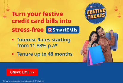 - For any Purchase Transaction through your HDFC Bank Credit Card, any Reward Points earned will be reversed if the transaction gets converted into SmartEMI.